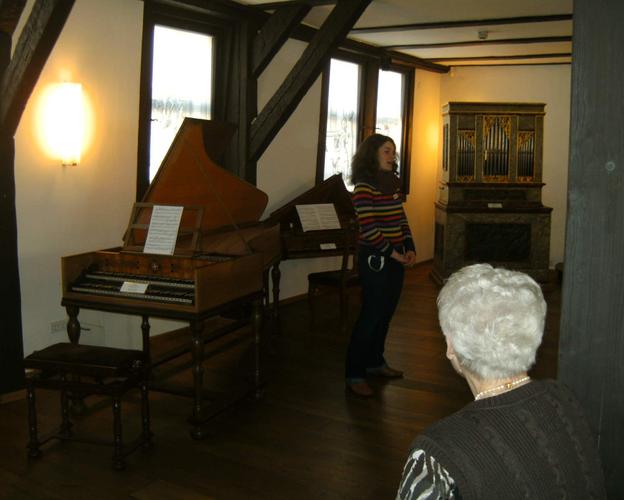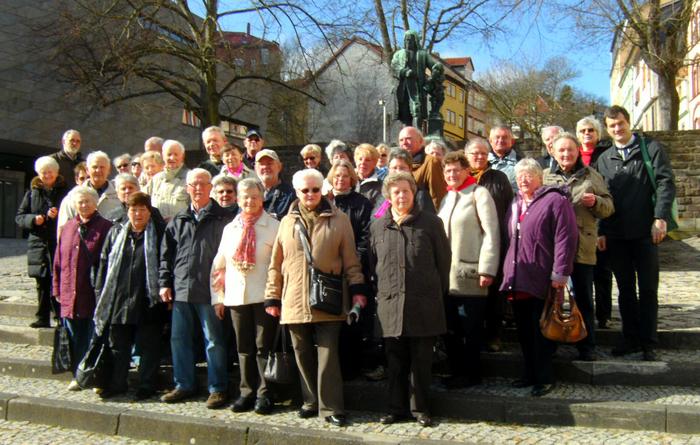 Noch am Nachmittag ging es weiter nach Eisenach. Dort stand am nächsten Tag ein Rundgang zu den Wirkungsstätten Martins Luthers auf dem Programm: Die Lateinschule, die der Reformator als 15jähriger Knabe besuchte, das Lutherhaus, wo er wohnte, das Lutherdenkmal vor dem Nikolaitor, aber auch der Bogen zur Kirchenmusik wurde geschlagen, die Luther seinerzeit begründete und im Wirken von Johann Sebastian Bach einen kreativen Höhepunkt erreichte. So besuchten die Reisenden selbstverständlich auch das Geburtshaus von Bach, verbunden mit einer historischen Instrumentenvorführung. „Die Musik Bachs berührt mich stets aufs Neue“, ließ Reiseteilnehmerin Birgit Hotop wissen. Auch die St. Georgenkirche, wo Bach getauft wurde und Luther als Kurrendesänger auftrat, streifte man auf dem Rundweg. Höhepunkt des Tages war der Besuch auf der Wartburg, wo nicht nur die Hl. Elisabeth im 13. Jahrhundert aufwuchs, sondern Luther nach dem Wormser Reichstag in Schutzhaft 1521 getarnt als Junker Jörg das Neue Testament in die deutsche Sprache übersetzte. Da mundete das „Luthermahl“ als Mittagessen in einer historischen Gaststätte ergänzend sehr gut zu den gesammelten Eindrücken.