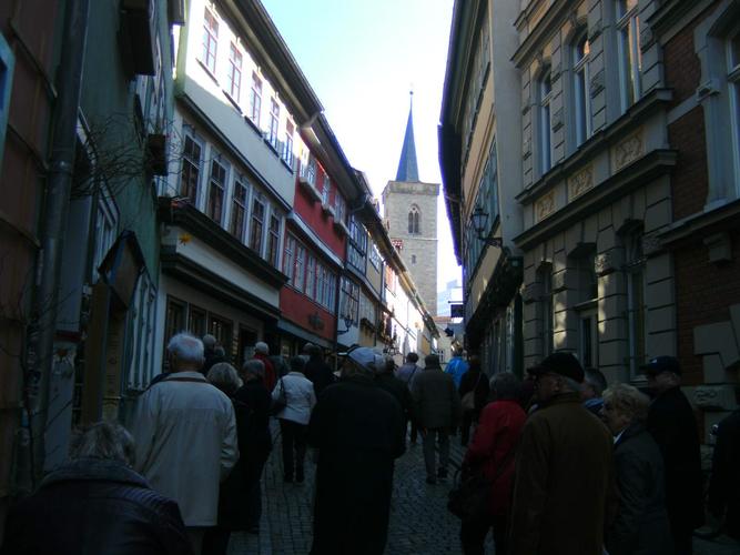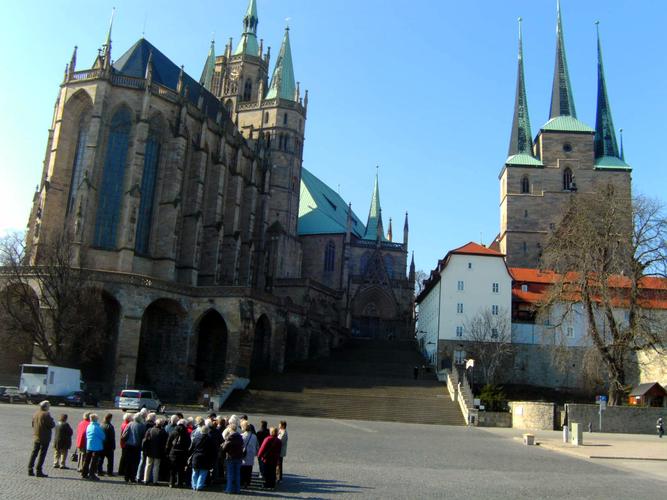 Am folgenden Tag reiste die Gruppe weiter nach Erfurt. Hier studierte Luther zunächst Jura, trat allerdings dann als Mönch in das Augustinerkloster ein. Eine Stadtbesichtigung führte dann auch über die weltberühmte Krämerbrücke zu diesem Kloster, das heute als evangelische Tagungsstätte dient. Der Dom, in dem Luther zum Priester geweiht wurde und die benachbarte Severikirche standen nach einer Mittagspause mit original Thüringer Rostbratwürsten ebenfalls auf dem Besichtigungsprogramm.