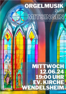 - Orgelmusik zum Mitsingen am 12.06.2024 um 19 Uhr in Wendelsheim