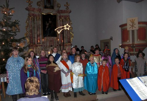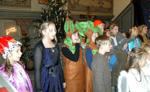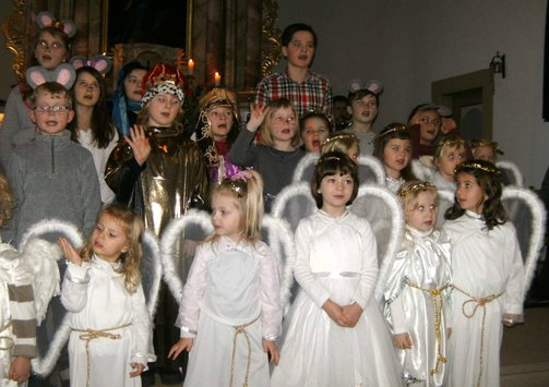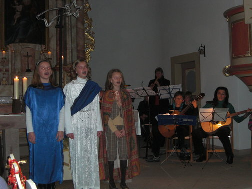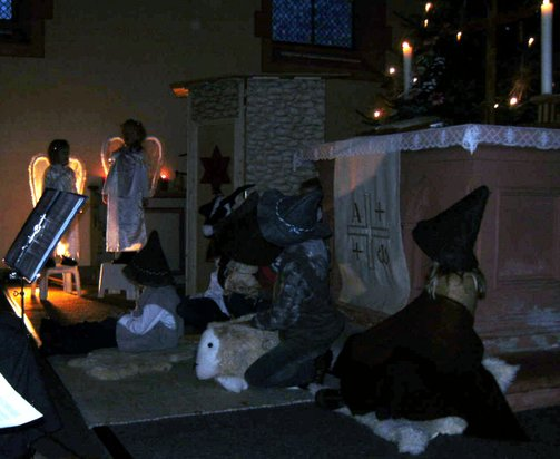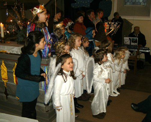 Aufführung des Krippenspiel-Musicals „Angela, Micha und Raffaela, die kleinen Weihnachtsengel“ am 24.12.2010 in der Kirche Nack