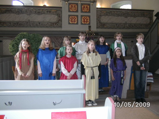 Einen besonderen musikalischen Leckerbissen servierte der Kinderchor „Pusteblume“ in der evangelischen Kirche. Passend zum Sonntag „Kantate“ führte er das Kinder-Mini-Musical „Emmaus“ auf. Die Leitung übernahm Gemeindepädagin Susanne Kraft. Einfühlsam am Keyboard begleitete Chorleiter Volker Funk aus Nack die singenden Kinder. Die gesamte Kirche diente als Schauplatz zahlreicher Sing-Spiel- und Sprechszenen. Dabei zeigten sich die zehnjährigen Chormitglieder im Alter zwischen acht und elf Jahren als muntere und engagierte kleine Künstler, die das nachösterliche Evangelienstück mit Leben erfüllten. Ganz frisch und in aller Leichtigkeit des Jungseins meisterten alle ihrer Aufgabe und Rolle. Alle waren in Togas gehüllt um den Erlebniswert der Aufführung noch zu steigern. Das Musical setzte an beim Besuch der Frauen wie etwa Maria Magdalena am „leer aufgefundenen Grab“. Sie riefen verzweifelt: „Der Gekreuzigte ist verschwunden.“ Die Rufe setzten sich fort, bis die Nachricht kommt, „er soll nicht verschwunden sein – der soll auferstanden sein.“