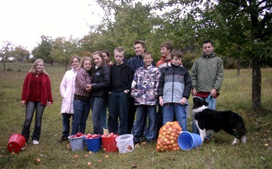 Konfirmanden beim Apfelsaftprojekt Herbst 2008