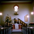 Das Kreuz auf dem Altar, aus verschiedenen Hölzern verschiedener Größe zusammengesetzt, verkörpert die versöhnte Vielfalt in und unter dem Kreuz Christi: Gemeinde Jesu Christi setzt sich immer zusammen aus Menschen mit verschiedener Herkunft, verschiedenem Alter und verschiedenen Charakteren, die sich aber im Hören auf Gottes Wort und im Glauben an seine Liebe verbunden und versöhnt weiß. Diese Darstellung möge den Besuchern der Kirche stets vor Augen halten, dass christlicher Glaube sich in der Bereitschaft zur Umkehr und Versöhnung offenbart und die Liebe Christi den Frieden wagt und damit neue Lebensmöglichkeiten schafft.