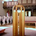 Im Jahre 1995 entschloss sich der Kirchenvorstand zur künstlerischen Ausgestaltung der Kanzelrückwand. Unter dem Thema des Satzes Jesu aus der Bergpredigt ,,Liebet eure Feinde“ hat Holzgestalter Johannes Führ aus Bechenheim ein Kunstwerk geschaffen, das immer wieder neu zur Versöhnung aufruft: